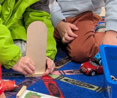 Our three year old class works on recognizing shapes and colors. We practice counting and recognizing numbers. We explore letters and sounds. We work on pre-writing and fine motor skills.